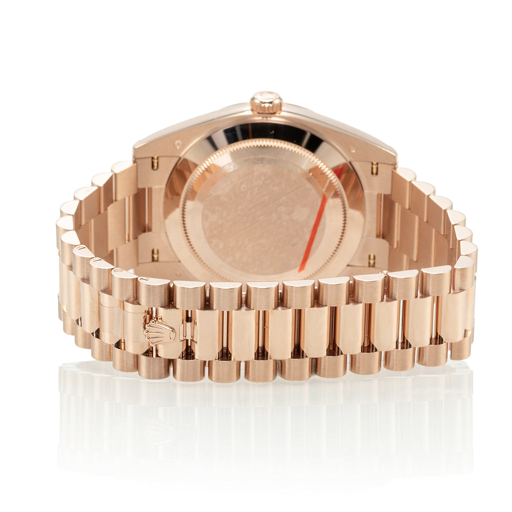 Das President-Armband mit verdeckter Crownclasp-Schließe sorgt für höchsten Tragekomfort und eine perfekte Passform am Handgelenk. Jede Rolex Day-Date ist als Superlative Chronometer zertifiziert und übertrifft die offiziellen Präzisionsstandards der Schweizer Chronometerprüfstelle (COSC).