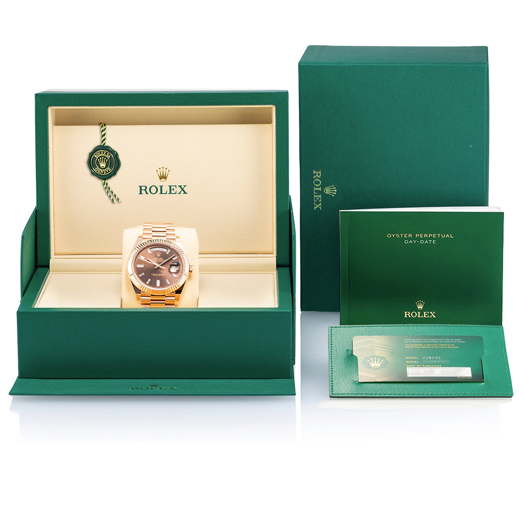Verleihen Sie Ihrem Stil eine unvergleichliche Note mit der Rolex Day-Date – einer Uhr, die Geschichte schreibt und Zukunft definiert.