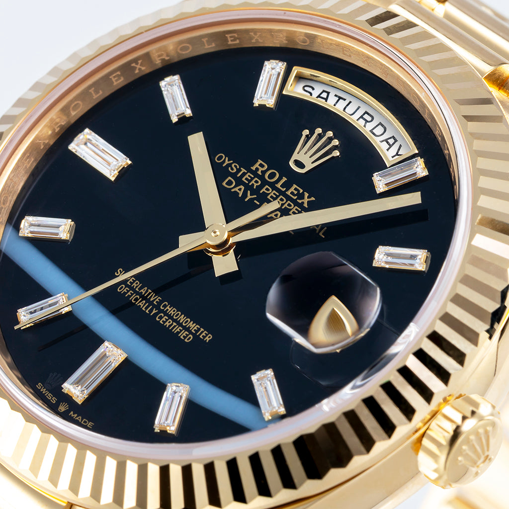 Verleihen Sie Ihrem Stil eine unvergleichliche Note mit der Rolex Day-Date – einer Uhr, die Geschichte schreibt und Zukunft definiert.