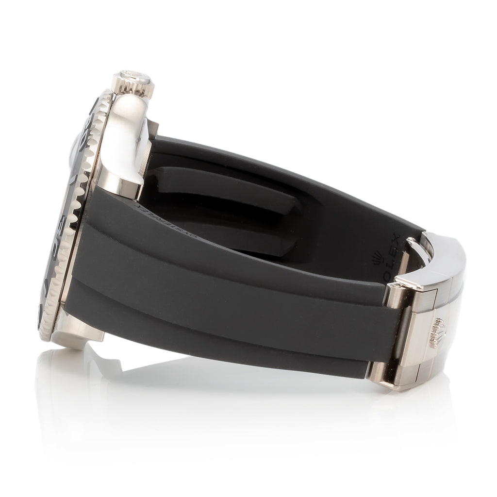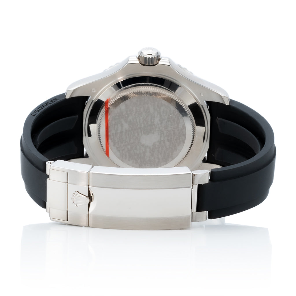 Das Oysterflex-Armband der Yacht-Master-Modelle mit Oysterlock-Sicherheitsfaltschließe und Easylink-Verlängerungssystem sorgt für höchsten Tragekomfort und eine perfekte Passform am Handgelenk. Jede Rolex Yacht-Master und Yacht-Master II ist als Superlative Chronometer zertifiziert und übertrifft die offiziellen Präzisionsstandards der Schweizer Chronometerprüfstelle (COSC).