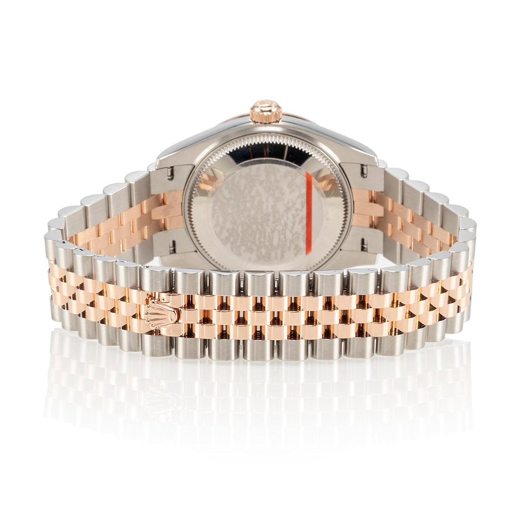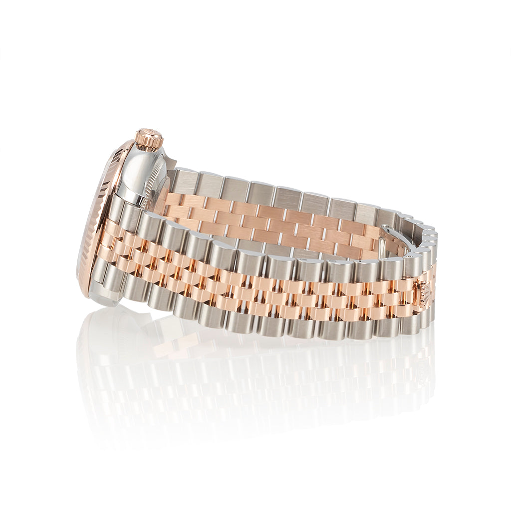 Ein weiteres bemerkenswertes Modell ist die Referenz 278271, die Oystersteel mit Everose-Gold kombiniert, was ihr ein besonders warmes und einladendes Erscheinungsbild verleiht. Diese Modelle reflektieren die traditionelle Eleganz von Rolex und sind mit allen Merkmalen der Datejust-Reihe ausgestattet, darunter das sofort erkennbare Datumfenster mit der ikonischen Zykloplupe.