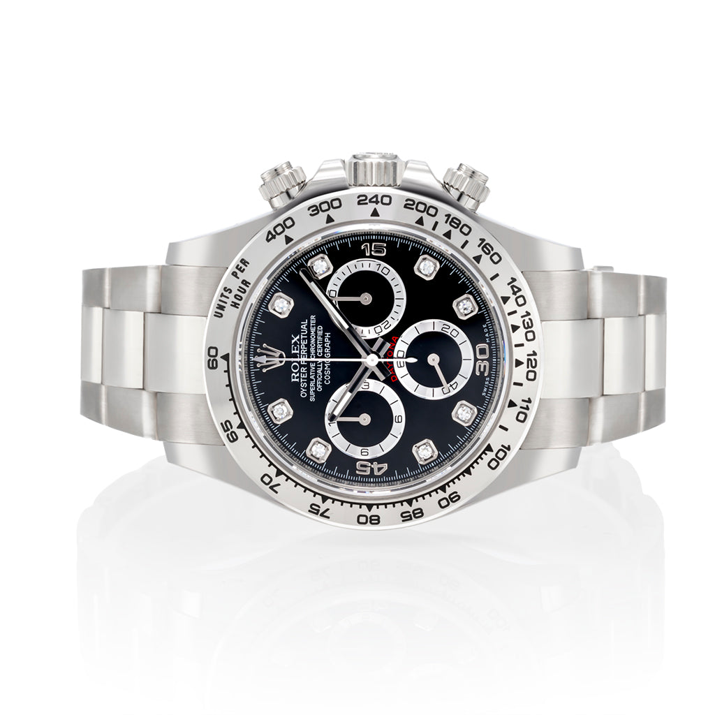 Entdecken Sie die exklusive Rolex Daytona in unserem Onlineshop für Luxusuhren. Profitieren Sie von unserem erstklassigen Kundenservice, sicheren Zahlungsmethoden und weltweitem Versand. Bestellen Sie noch heute und bereichern Sie Ihre Sammlung mit einer Uhr, die für höchste Handwerkskunst und sportliche Eleganz steht. Unser über 70 Jahre erfahrenes Juweliergeschäft garantiert Ihnen Qualität und Expertise, die Sie vertrauen können.