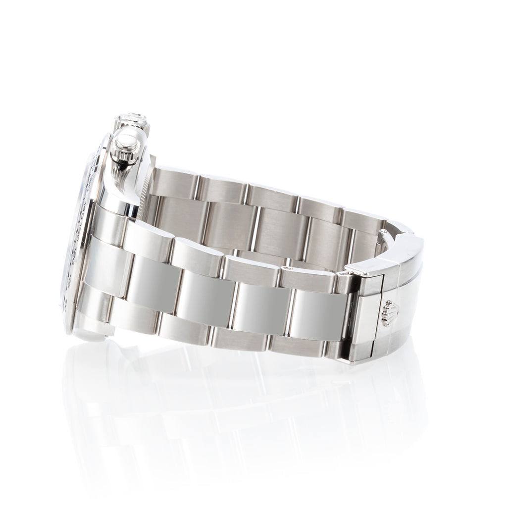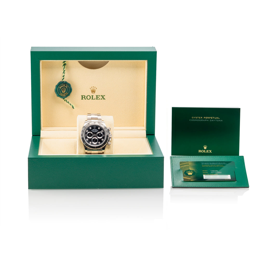 Das Oyster-Armband mit Oysterlock-Sicherheitsfaltschließe und Easylink-Verlängerungssystem sorgt für höchsten Tragekomfort und eine perfekte Passform am Handgelenk. Jede Rolex Daytona ist als Superlative Chronometer zertifiziert und übertrifft die offiziellen Präzisionsstandards der Schweizer Chronometerprüfstelle (COSC).