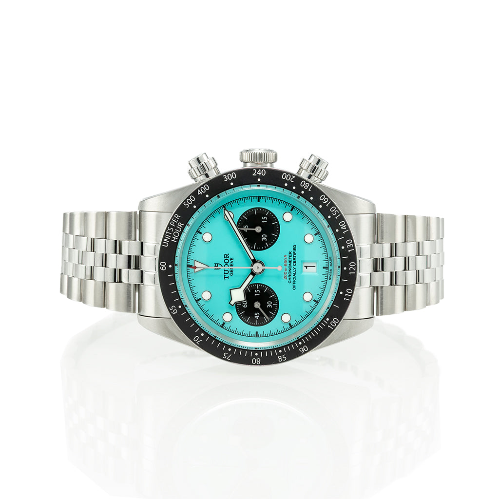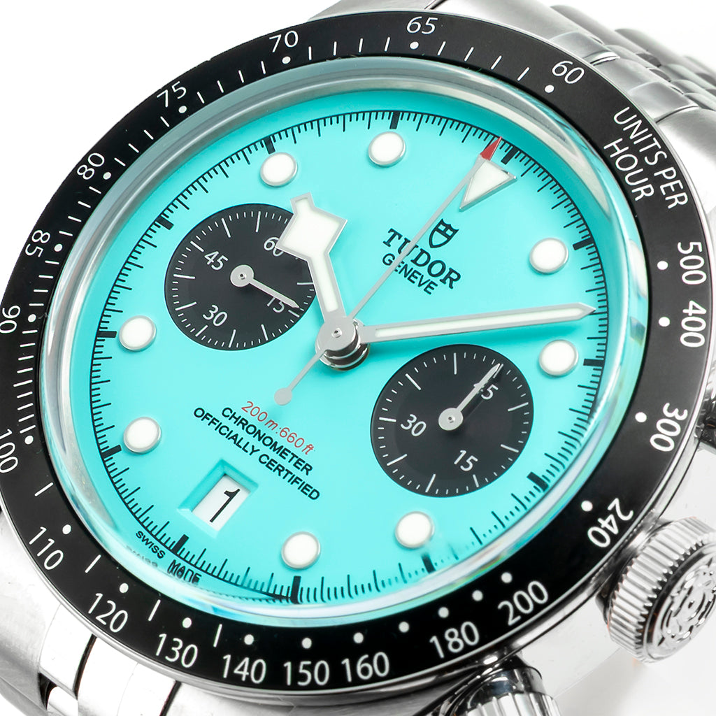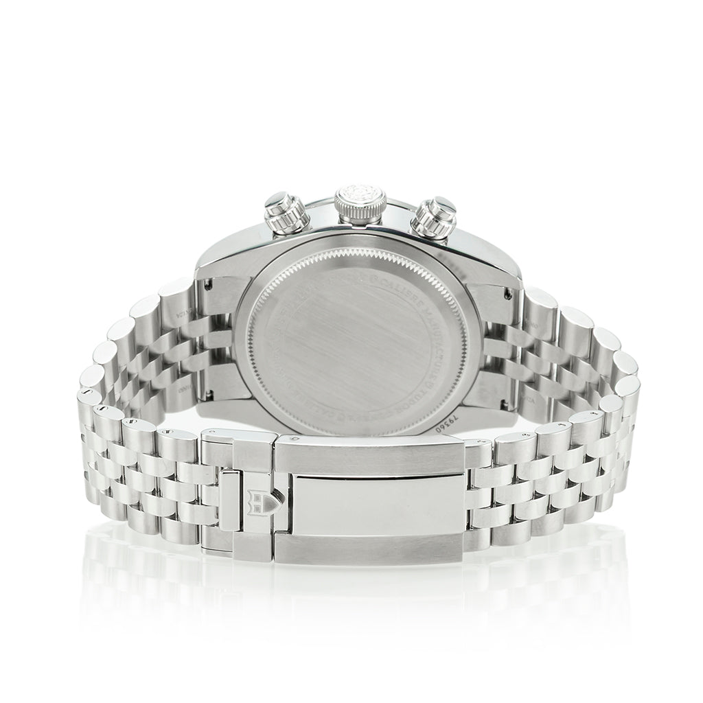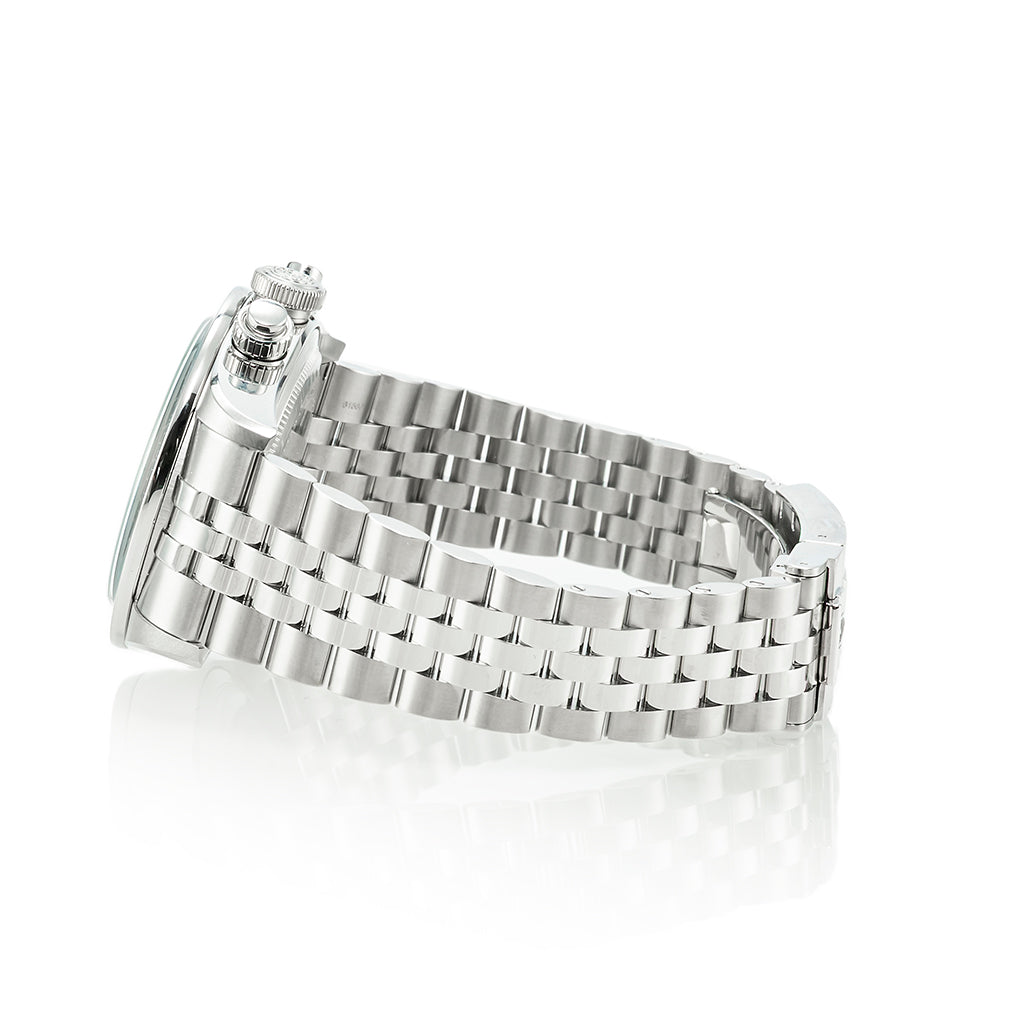 Datumsanzeige, Stunde, Minute, Zentralsekunde, Stoppfunktion und Chronograph