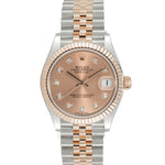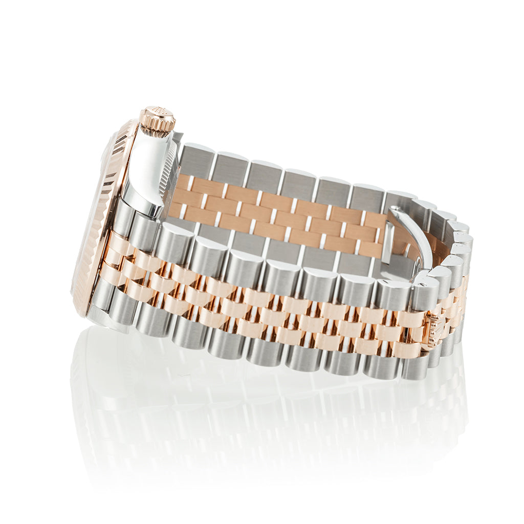 Ein weiteres bemerkenswertes Modell ist die Referenz 278271, die Oystersteel mit Everose-Gold kombiniert, was ihr ein besonders warmes und einladendes Erscheinungsbild verleiht. Diese Modelle reflektieren die traditionelle Eleganz von Rolex und sind mit allen Merkmalen der Datejust-Reihe ausgestattet, darunter das sofort erkennbare Datumfenster mit der ikonischen Zykloplupe.