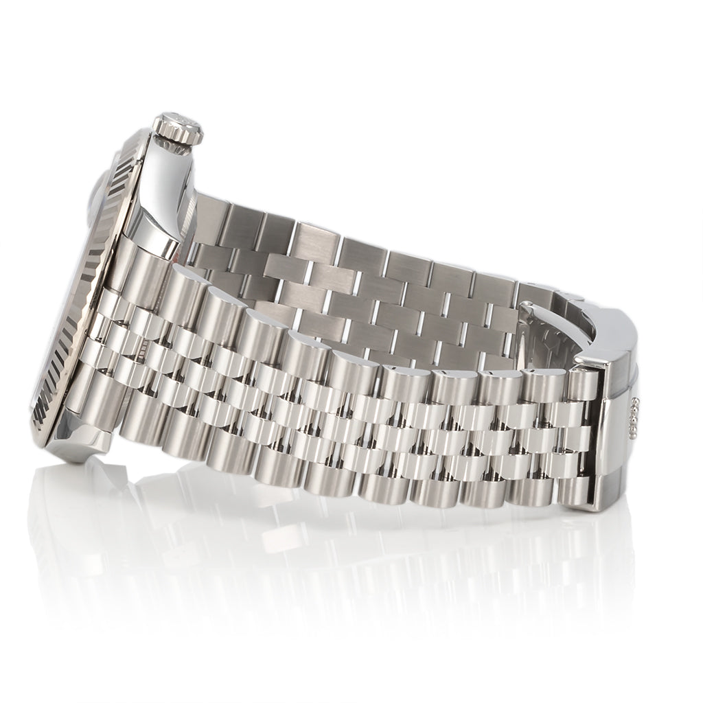 Die Rolex Datejust 41mm ist ein Symbol für Stil und Präzision und repräsentiert die perfekte Symbiose aus klassischem Design und moderner Technik. Seit ihrer Einführung ist die Datejust ein fester Bestandteil der Rolex-Kollektion und hat sich dank ihrer Vielseitigkeit und ihrem unverkennbaren Aussehen als Favorit etabliert.