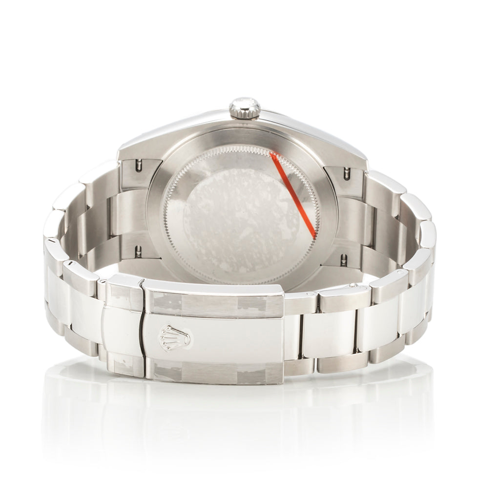 Die Datejust 41mm ist nicht nur funktional, sondern auch ein Ausdruck von Eleganz. Das Oyster-Gehäuse, das bis zu 100 Meter wasserdicht ist, und das Saphirglas schützen das Zifferblatt, das durch seine Einfachheit und Klarheit besticht. Die Datumslupe über dem Datumfenster bei 3 Uhr, eine der bekanntesten Innovationen von Rolex, verbessert die Lesbarkeit und bleibt ein charakteristisches Merkmal der Datejust-Linie.