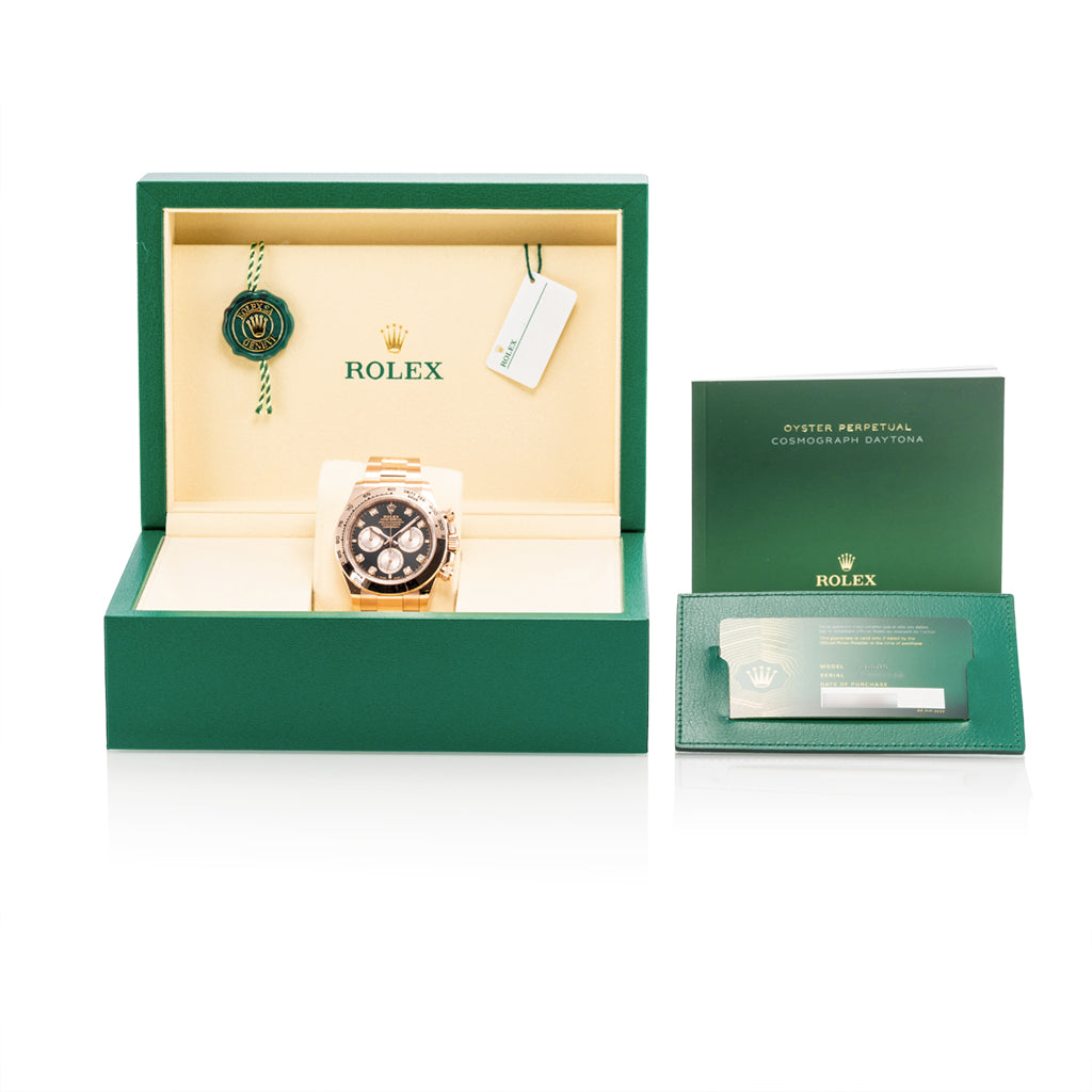 Das Oyster-Armband mit Oysterlock-Sicherheitsfaltschließe und Easylink-Verlängerungssystem sorgt für höchsten Tragekomfort und eine perfekte Passform am Handgelenk. Jede Rolex Daytona ist als Superlative Chronometer zertifiziert und übertrifft die offiziellen Präzisionsstandards der Schweizer Chronometerprüfstelle (COSC).
