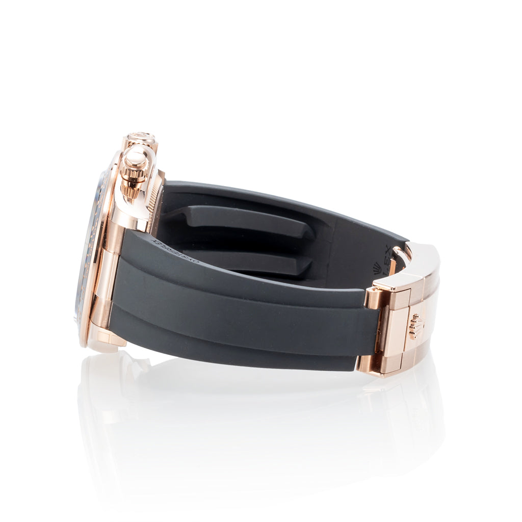 Das Oyster-Armband mit Oysterlock-Sicherheitsfaltschließe und Easylink-Verlängerungssystem sorgt für höchsten Tragekomfort und eine perfekte Passform am Handgelenk. Jede Rolex Daytona ist als Superlative Chronometer zertifiziert und übertrifft die offiziellen Präzisionsstandards der Schweizer Chronometerprüfstelle (COSC).