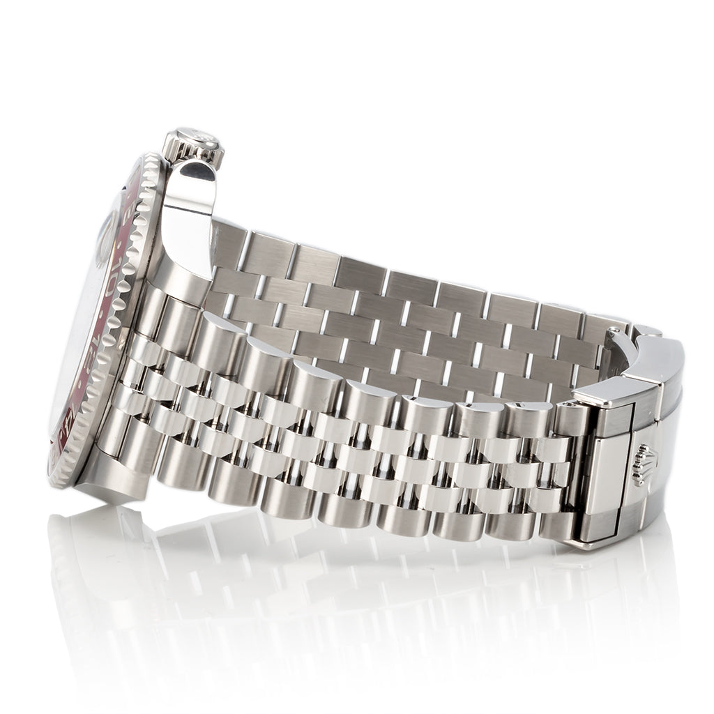 Das Oyster- oder Jubilé-Armband mit Oysterlock-Sicherheitsfaltschließe und Easylink-Verlängerungssystem sorgt für höchsten Tragekomfort und eine perfekte Passform am Handgelenk. Jede Rolex GMT-Master II ist als Superlative Chronometer zertifiziert und übertrifft die offiziellen Präzisionsstandards der Schweizer Chronometerprüfstelle (COSC).