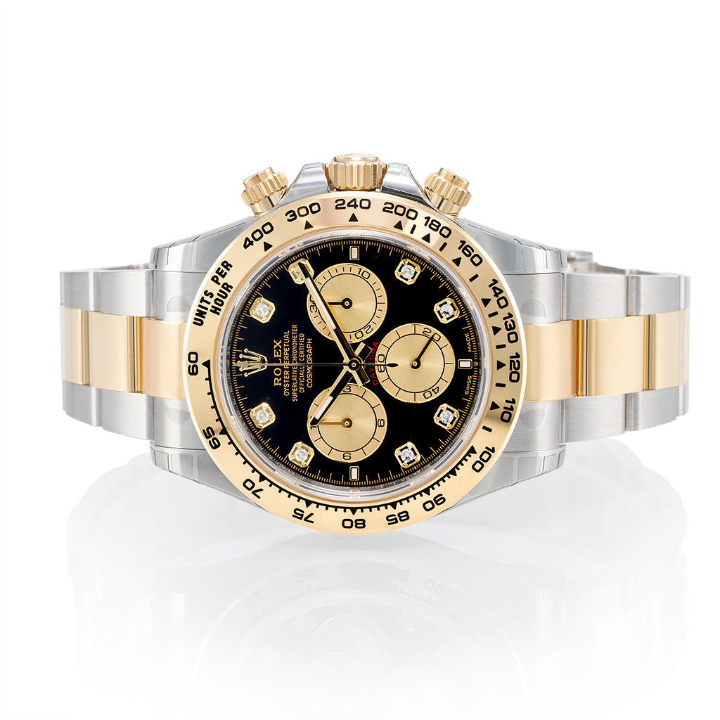 The Oyster bracelet with Oysterlock safety clasp and Easylink extension system ensures maximum comfort and a perfect fit on the wrist. Every Rolex Daytona is certified as a Superlative Chronometer and exceeds the official precision standards of the Swiss Chronometer Testing Institute (COSC).