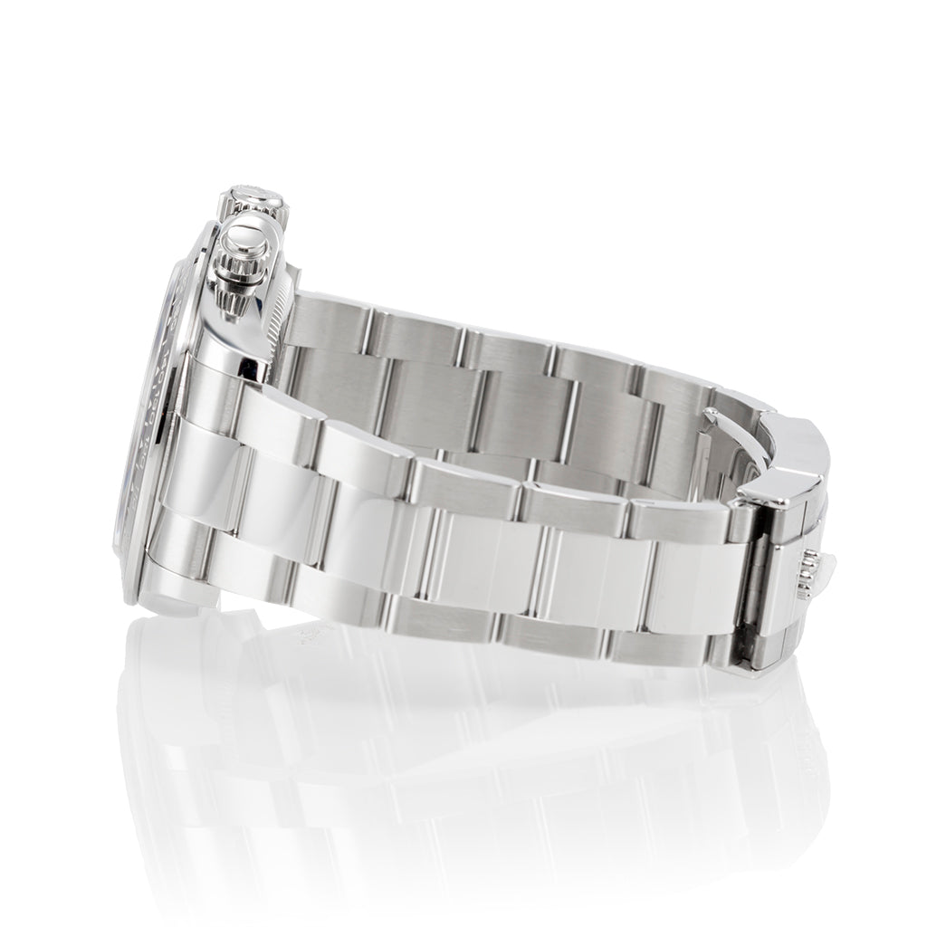 The Oyster bracelet with Oysterlock safety clasp and Easylink extension system ensures maximum comfort and a perfect fit on the wrist. Every Rolex Daytona is certified as a Superlative Chronometer and exceeds the official precision standards of the Swiss Chronometer Testing Institute (COSC).