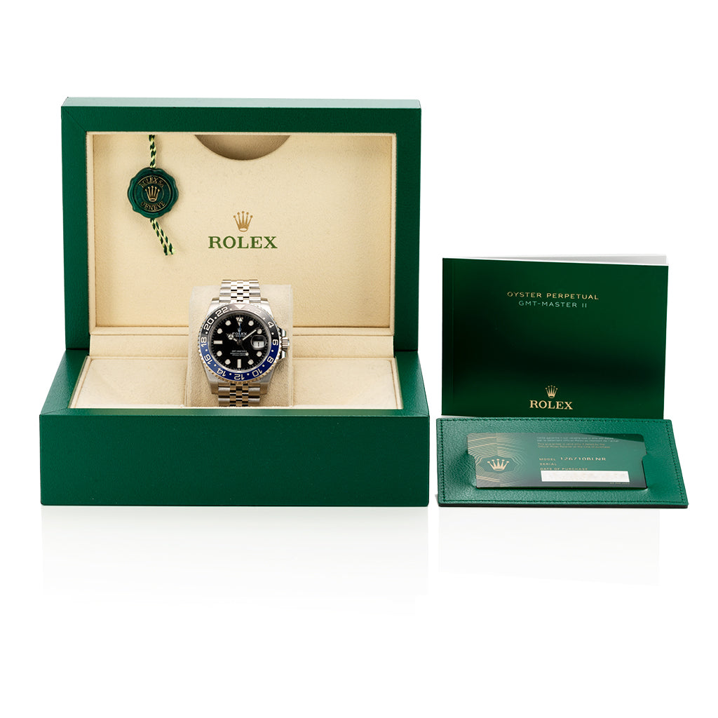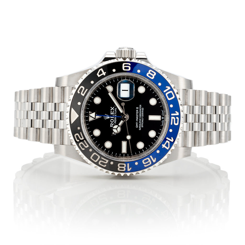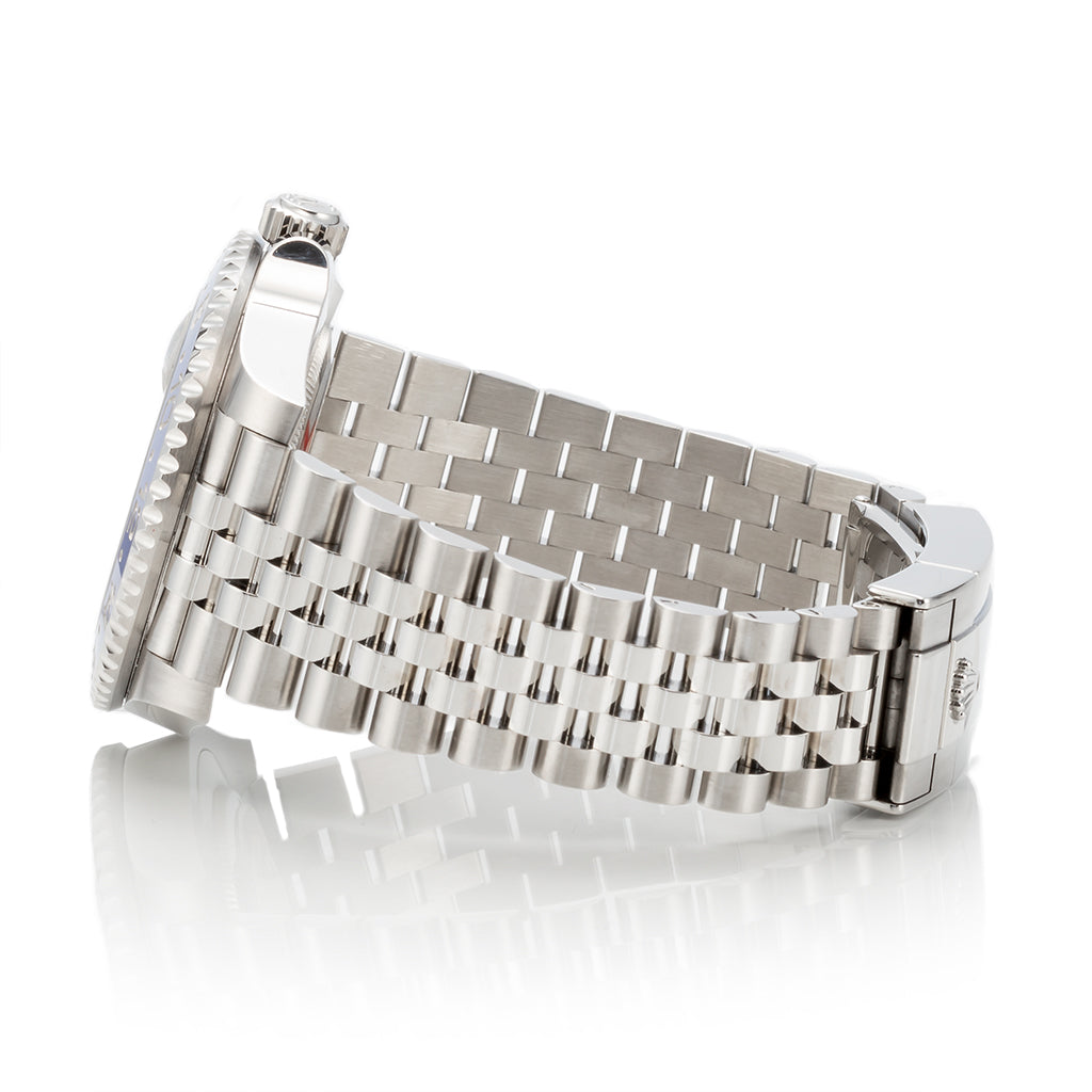 The Oyster or Jubilee bracelet with Oysterlock safety folding clasp and Easylink extension system ensures maximum comfort and a perfect fit on the wrist. Every Rolex GMT-Master II is certified as a Superlative Chronometer and exceeds the official precision standards of the Swiss Chronometer Testing Institute (COSC).